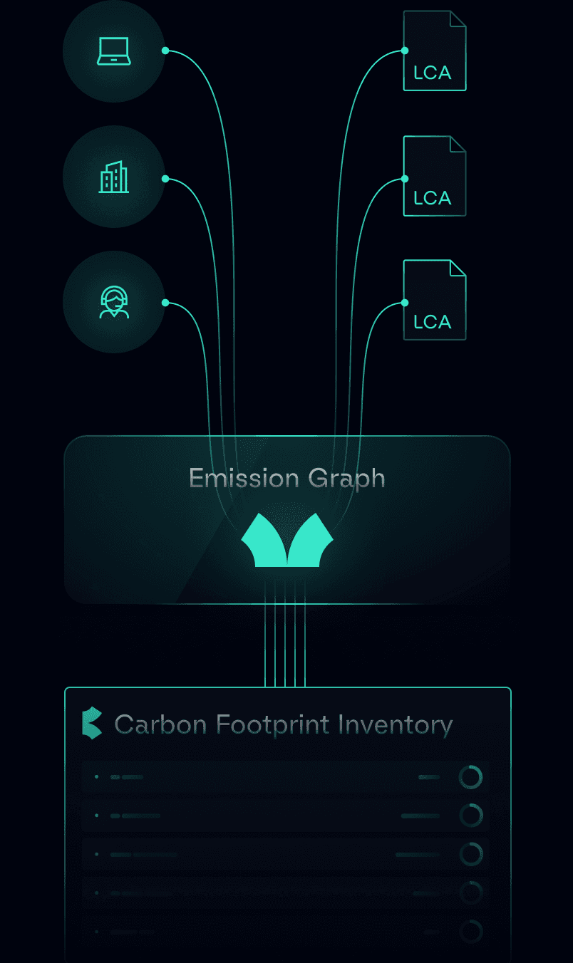Bardo’s Emission Graph continuously sources, verifies, and improves the emission factors that determine your footprint. It connects every activity in the Carbon Footprint Inventory to a traceable, ranked emission factor, giving you numbers you can trust, and defend